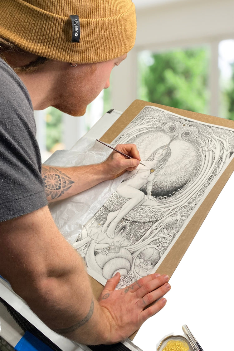 Clint's dedication to his craft is evident in each one of his pieces, as he invites his audience to join him on a journey of self-discovery and the exploration of the human experience. Throughout his artistic journey, Clint has been inspired by the beauty and complexity of the natural world, as well as by the power of music and the transformative experiences of psychedelics. His art serves as a reflection of his own personal growth and self-discovery, and he hopes that his work can inspire others to explore their own inner worlds and connect with the larger universe. As an artist, Clint Grierson is constantly seeking new ways to challenge himself and expand his creative horizons.
